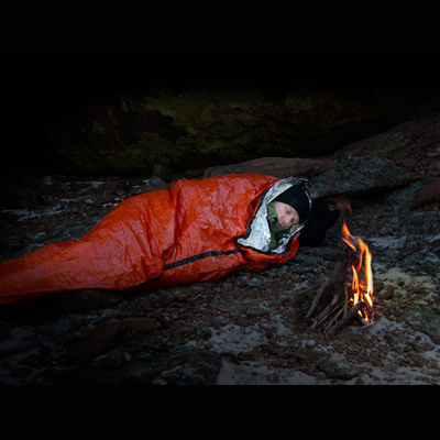 体熱の90%を反射させて体温を維持する特殊な素材を加工した寝袋です。