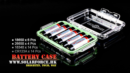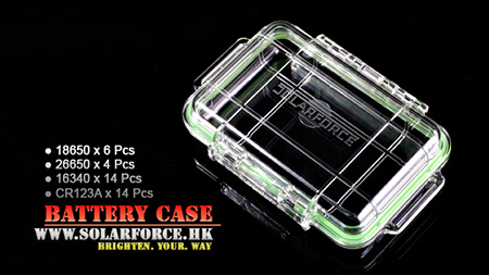 | SOLARFORCE ソーラーフォース 防水電池ケース Battery Case (V2) 【収納電池:CR123A:14本 / 16340:14本 / RCR123A:14本, 18650:6本, 26650:4本, 単3:20本 】※電池は別売りです。 |