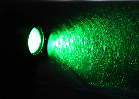 緑色の光は、蛍光灯下で見るよりも、異物や傷の発見がしやすくなります。