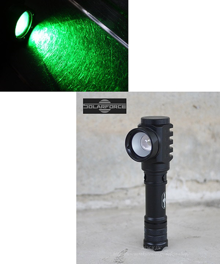表面検査・目視検査用緑色LED搭載ライト【縦型アングルライト】 SOLARFORCE ソーラーフォース L2E 凸レンズ付反射鏡搭載 延長チューブ付属 色:GREEN-LED搭載ライト