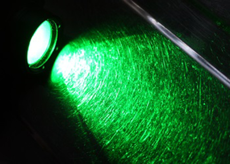 緑色の光は、蛍光灯下で見るよりも、異物や傷の発見がしやすくなります。