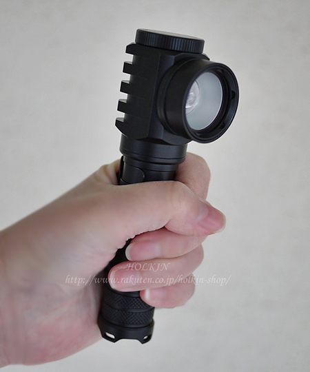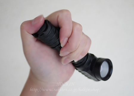 軽く押すと点灯、離すと消灯。カチッと押し込むと常時点灯操作ができます。