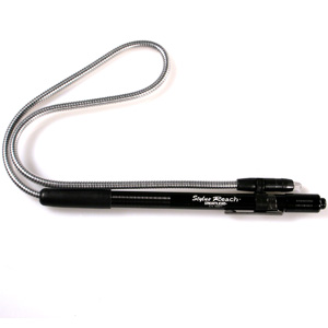 | STREAMLIGHT STYLUS は、砲弾型白色LED×1灯塔載のアルミ製ペン型ライトです。長さ18インチ(約45cm)のフレキシルブル・ネックが特長です。電源は、AAAA型アルカリ電池3本使用です。携帯に便利な金属クリップがついています。点灯・消灯方法は、エンド部を回転することで連続点灯ができます。エンド部プッシュ・ボタンを押すことで間欠点灯操作ができます。グリップ部は、滑り止めの凸凹加工が施されています。 |