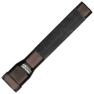 7.7 in. black machined aluminum housing with non-slip rubber grip. Has a 3.7V 6 watt xenon gas filled bi-pin bulb with up to 15000 candlepower and 1 hour of continouous run time use between charges. Ni-Cad 3.6V 1.8 amp rechargeable. 11.1 ounces.