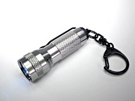 | STREAMLIGHT KEY-MATE は、砲弾型青色LED×1灯塔載のアルミ製小型ライトです。電源は、LR44ボタン電池4個使用です。金属製スナップ・フックが付属しているので、鍵などを取り付けることができます。点灯・消灯方法は、ヘッド部回転式です。長めのランヤード・ネック・ストラップが付属しています。電池交換できます。ポケット・クリップつき。 |