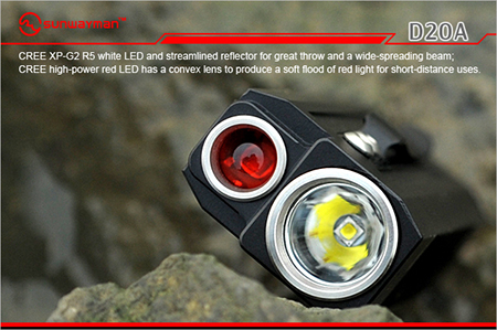 ● White light uses high quality metal reflector, maintains great throw distance and spread with an ideal beam pattern; Red light uses high quality resin lens