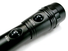 LEDs) は、砲弾型白色LED×3灯+紫外線LED×3灯 搭載のハンド・ライトです。独立した2つのプッシュ式スイッチを採用しているので、点灯させたいLEDを、素早く選択できます。机上でコロコロと転がらないアンチ・ロール・デザインです。電源は、単3アルカリ電池×2本使用です。専用ポーチ付属。 |