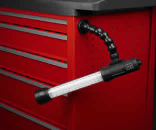Worklight slides firmly into clamp, flexible long
