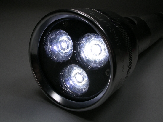 MAGLITE 4Dに装着した場合。初期の明るさの継続時間ではありません。 |