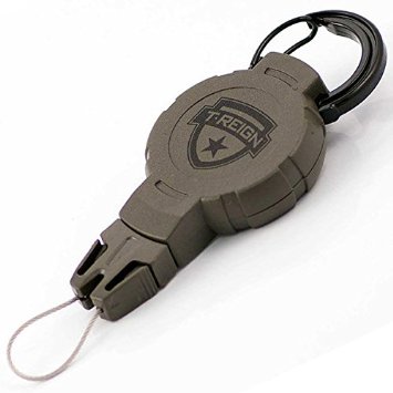T-REIGN / ティーレイン キーリール Retractable Gear Tether 【Mサイズ:カラビナタイプ】 ケブラーコードがスムースで静かに伸縮します。 ユニバーサルギアアタッチメント(金属ワイヤー製)で 簡単脱着! サイズ:全長約135mm×幅45mm×厚さ15mm 重量:約60g ケースの素材:ポリカーボネート製 コード長さ:900mm (90cm) 巻取荷重:約170g ※取り付けたギアの重みで下がらずに巻き戻す事ができる重さになります。 ※お届けは本商品1点です。