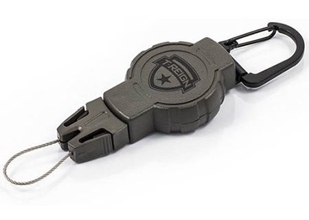 T-REIGN / ティーレイン キーリール Retractable Gear Tether 【Sサイズ:カラビナタイプ】 ケブラーコードがスムースで静かに伸縮します。 ユニバーサルギアアタッチメント(金属ワイヤー製)で 簡単脱着! サイズ:全長約100mm×幅40mm×厚さ15mm 重量:約50g ケースの素材:ポリカーボネート製 コード長さ:600mm (60cm) 巻取荷重:約170g ※取り付けたギアの重みで下がらずに巻き戻す事ができる重さになります。 ※お届けは本商品1点です。