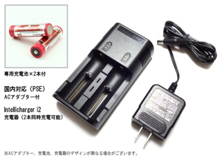 国内対応(PSE)ACアダプター×1セット、専用充電池×2本付