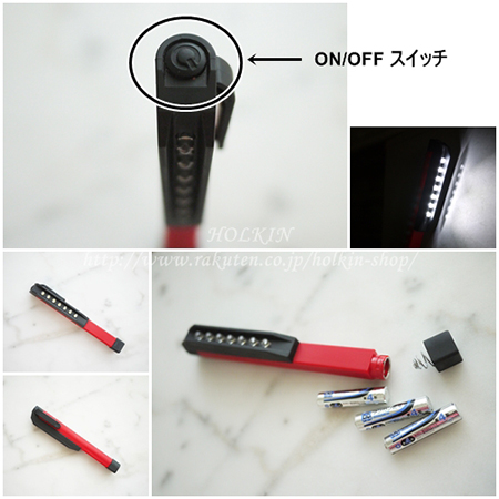 | ペン型 LED ワークライト : マグネット付 【本体色:レッド】 7LED ミニポケットライト / 点検・作業用LEDライト |
