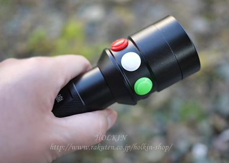 経済的な充電式タイプ 【拡散ディフューザー付き】 Cree Q5 白色LED + 赤色LED + 緑色LED 搭載【18650×1本】 ホワイト グリーン レッド 合図 鉄道会社 鉄道マン LEDワークライト / 点検・作業用ライト カラーLEDライト / 鉄道関係用ライト