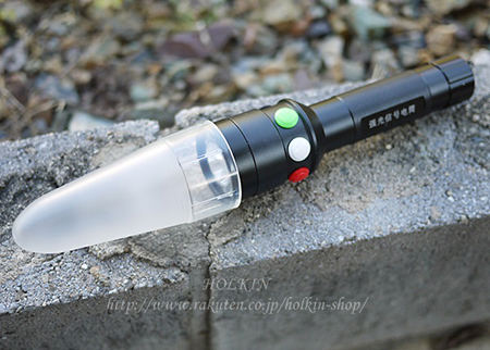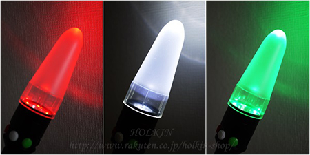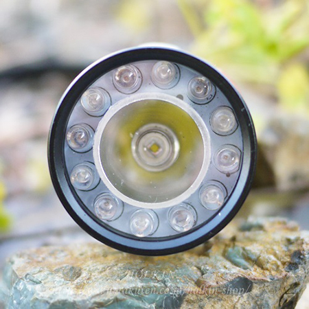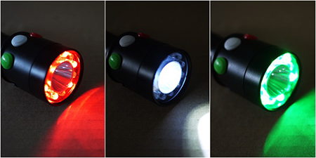 白色LED 1灯 + 赤色LED 6灯 + 緑色LED 6灯 計13灯搭載のハンディライトです。