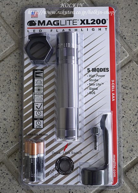 | 本体色:グレー【明るさMAX:172ルーメン / タクティカル・クリップ、アンチロール・レンズ・カバー、フィルター同梱モデル 】:MAGLITE XL200 LED Flashlight : XL200-S309C |