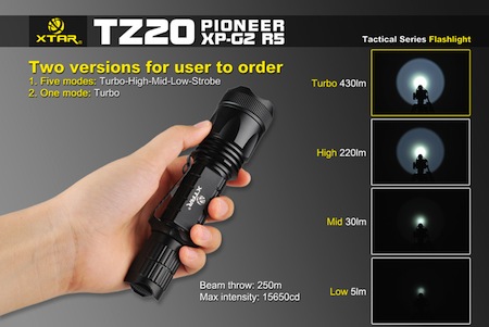 XTAR TZ20 PIONEER XP-G2 R5 【明るさMAX:430ルーメン / CREE XP-G2 R5 白色LED 搭載 / 使用電池 :