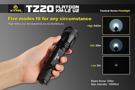 XTAR TZ20 PLATOON XM-L2 U2 【明るさMAX:840ルーメン / CREE XM-L2 U2 白色LED 搭載 / 使用電池 :