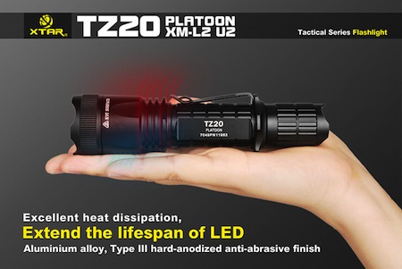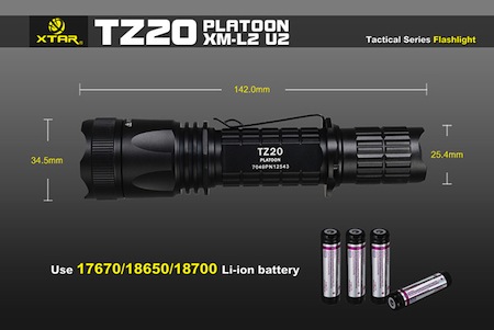 | XTAR TZ20 PLATOON XM-L2 U2 【明るさMAX:840ルーメン / CREE XM-L2 U2 白色LED 搭載 / 使用電池 : (3.7V)18650 / 18700 / 17670 充電池 x 1本】 |
