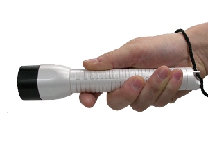 は、砲弾型白色LED×6灯搭載のハンド・ライトです。電源は、単3アルカリ電池×3本使用です。本体は、軽量なプラスティック製です。手元〜近距離の広範囲照射に最適です。点灯・消灯は、ヘッド部回転式です。ストラップが付属です。 |