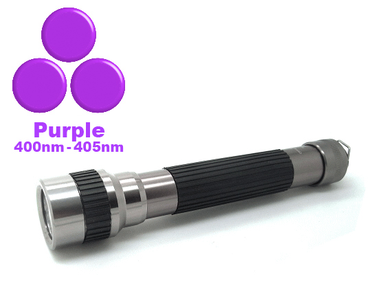 400 nm - 405 nm Purple, lampe de poche a 3 DEL, type de pile deux AA