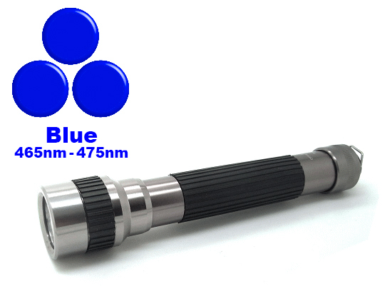 465 nm - 475 nm Blue LED, 3 LED Taschenlampe, Batterietyp zwei AA