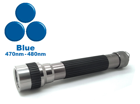 470 nm - 480 nm Blue LED, lampe de poche a 3 DEL, type de pile deux AA