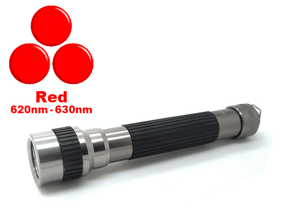 620 nm - 630 nm Red LED, lampe de poche a 3 DEL, type de pile deux AA