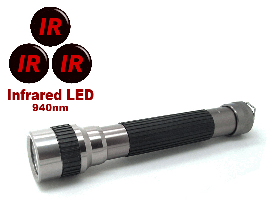 940 nm Infrared LED, lampe de poche a 3 DEL, type de pile deux AA