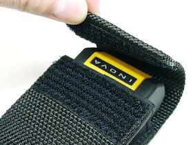 | フラップ・フタの開閉は、マジック・テープ クラレファスニング製 です。背面のベルト通しループの形状は、スナップ・ボタン脱着式です。ベルトを外すことなく、ホルダーを装着できます。ライトの収納向きは、ヘッド部が下です。 |